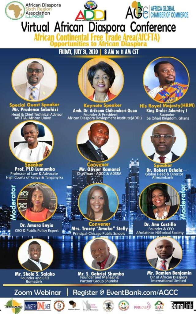 This Second African Diaspora Conference & Gala (ADC) intends to convene Africans from the Caribbean, South and Central America, and North America for discussions of the opportunities offered by the implementation of AfCFTA. This Conference will follow up the recommendations and Initiatives of the First African Diaspora Conference & Gala held in Dallas, Texas in […]