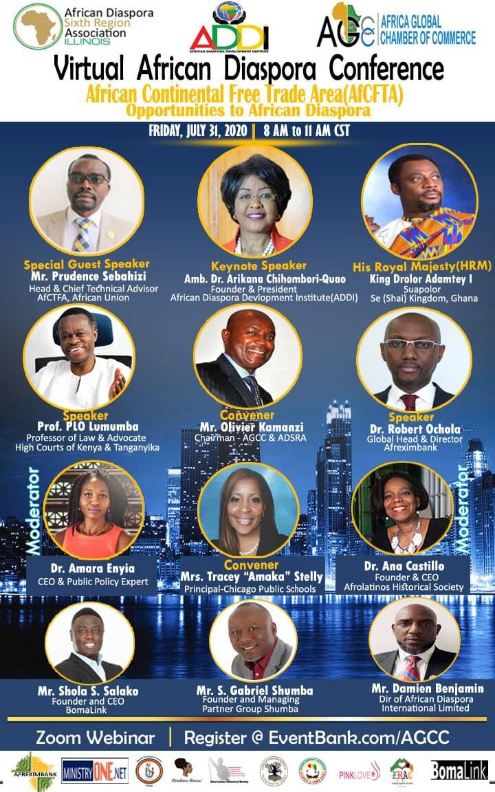 This Second African Diaspora Conference & Gala (ADC) intends to convene Africans from the Caribbean, South and Central America, and North America for discussions of the opportunities offered by the implementation of AfCFTA. This Conference will follow up the recommendations and Initiatives of the First African Diaspora Conference & Gala held in Dallas, Texas in November 2019.
